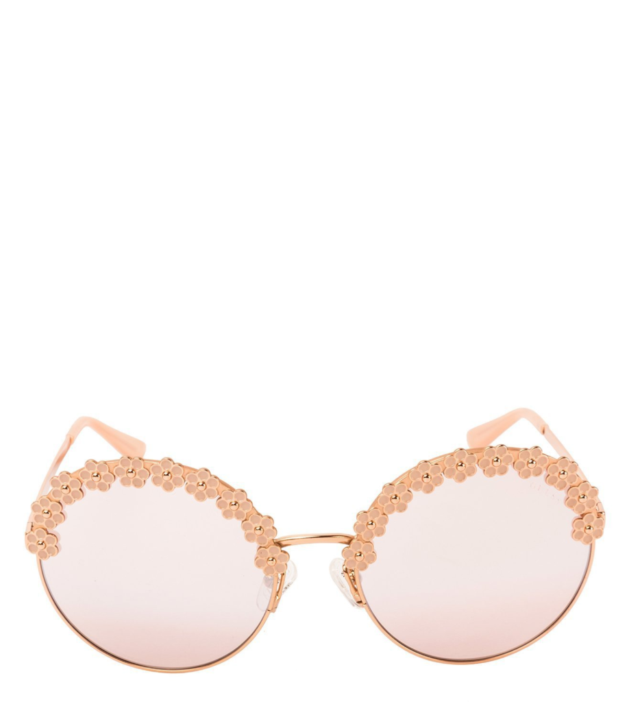 Our next pick from Chopard is the epitome of luxury meeting elegance. These oversized square-shaped sunglasses come with a sophisticated gold-tone metal frame, exuding an opulent yet timeless appeal. What truly sets them apart is the intricate detailing on the temples—adorned with delicate embellishments reminiscent of Chopard’s signature haute joaillerie pieces.