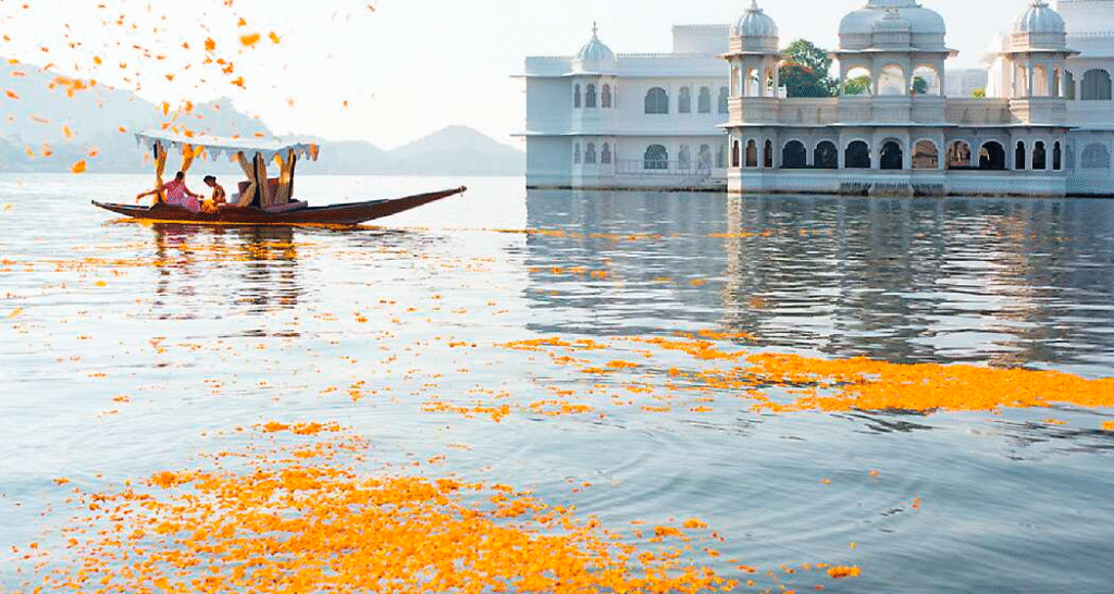 In the middle of Lake Pichola, like something out of a fairytale, floats the ethereal Taj Lake Palace. Once the summer palace of Maharana Jagat Singh II, this 18th-century marvel is crafted entirely in white marble, with scalloped arches, intricate carvings, and a romantic aura that is hard to replicate. Accessible only by boat, arriving here feels like stepping into another realm. Inside, opulence unfolds—hand-painted murals, rich textiles, and antique furnishings wrap you in history. Evenings come alive with folk music, candle-lit dinners by the lake, and breathtaking views of the City Palace and Jag Mandir shimmering under moonlight. It’s no wonder this palace has starred in movies and the dreams of countless travellers.